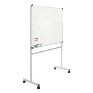 Pizarra de Pie WHITE Magnética – Soporte en «T» Acero Vitrificado – Cuadrícula