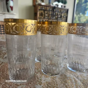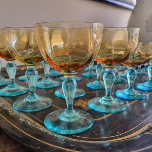Juego de copas de cristal soplado de la histórica y prestigiosa casa francesa Daum, que forma parte del Inventario del patrimonio inmaterial cultural de Francia.. El juego de copas, del modelo Bolero, se encuentra en perfecto estado. El diseño incluye el icónico nudo retorcido de Daum en la unión de la copa con el talle. Marca de la cristalería en la base de las copas. Observe las fotografías, son parte de la descripción. Sin accidentes. Consta de