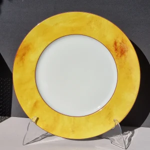 Porcelana de Limoges. Cuatro bajoplatos amarillo brillante de Jammet Seignolles.