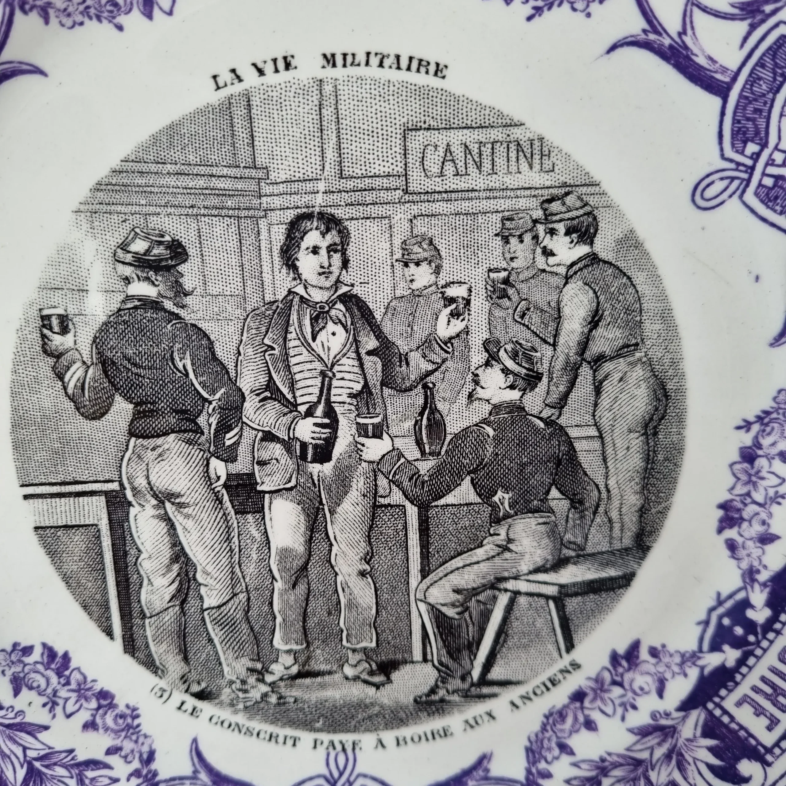 6 platos «parlantes» de Sarreguemines, «La vida militar»