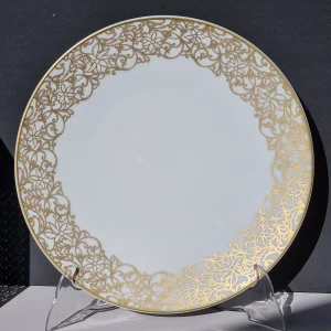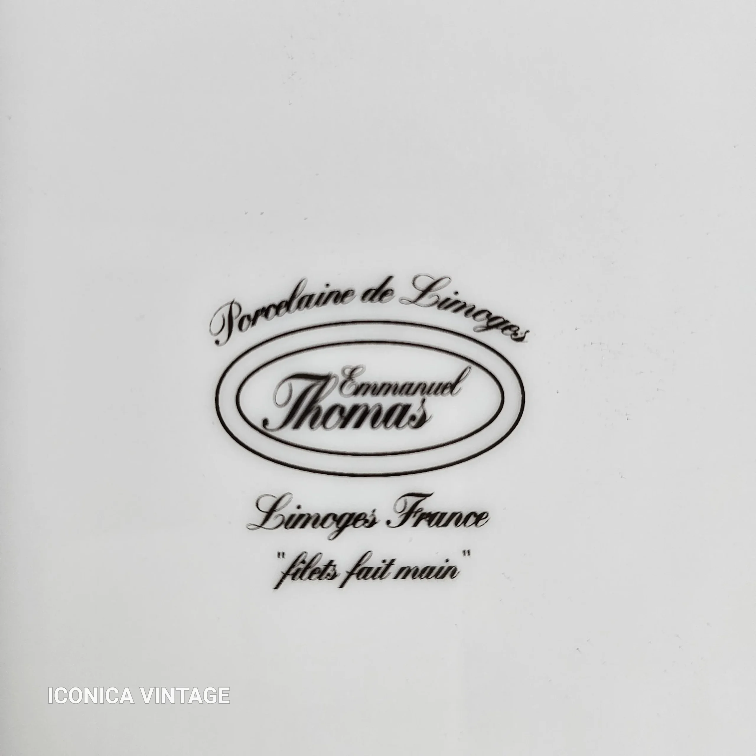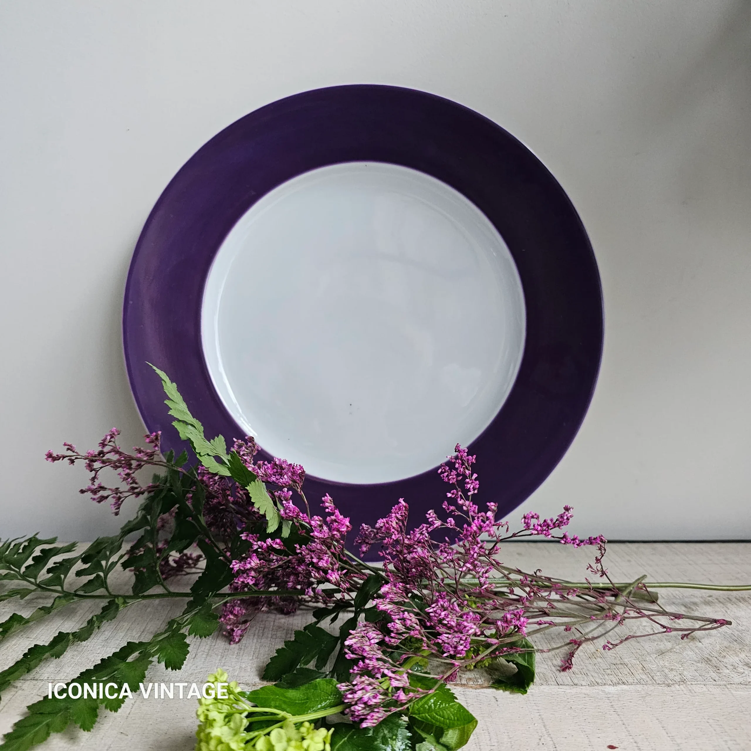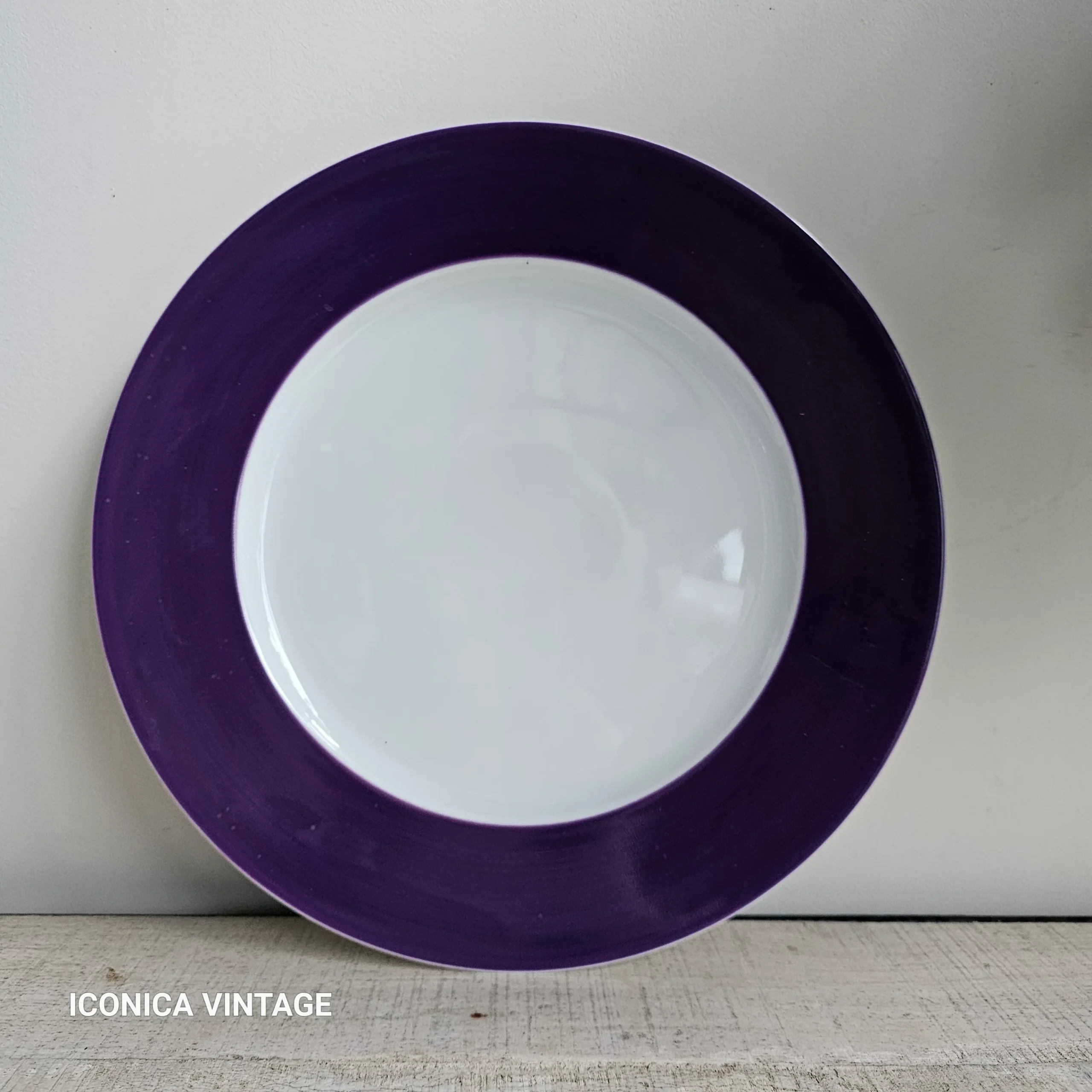 Originales bajoplatos de porcelana de Limoges fabricados por E.Thomas, en un precioso color berenjena intenso que realza cualquier vajilla. Francia, siglo XXI . Muy buen estado vintage. Prácticamente sin uso. Dimensiones, 30 cm de diámetro. Se venden en sets de 6 platos cada uno. Hay tres sets disponibles.