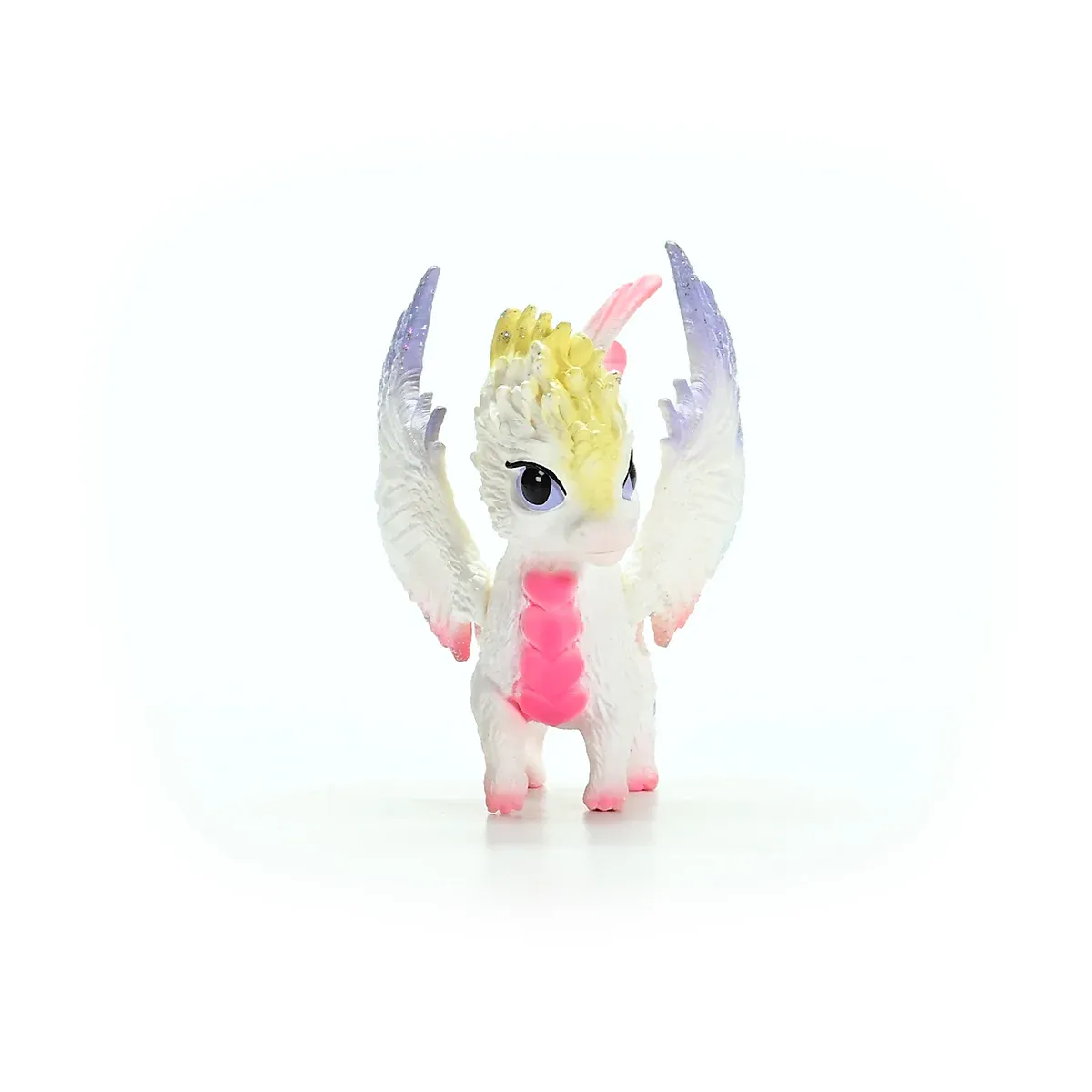 Con sus grandes ojos violeta, parece que el bebé dragón arcoíris no es capaz de matar ni una mosca. Pero engaña, porque este pequeño es un pícaro de mucho cuidado. Vuela ágil por BAYALA® con sus brillantes alas, da volteretas en el cielo y discurre muchas bromas. ¡Cuando sea adulto hasta podrá pintar arcoíris en el cielo! ¡Quién lo diría!
