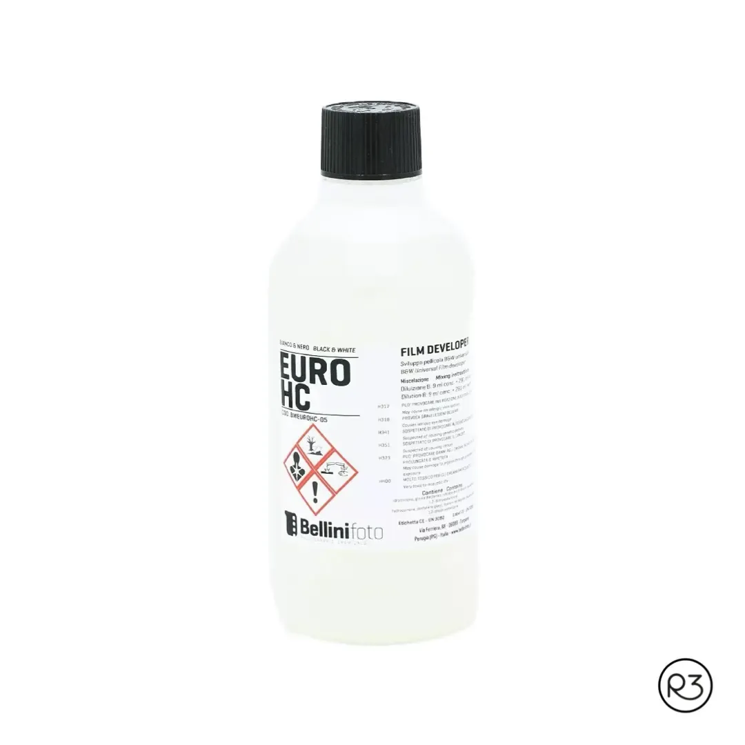 El revelador de negativos Euro HC de Bellini es una alternativa (europea) al HC-110 de Kodak, que ahora es difícil de conseguir desde que la producción se ha trasladado a Asia. Al igual que el HC-110, Euro HC es un revelador muy activo para películas en blanco y negro. Ofrece negativos con un grano moderadamente fino, buen detalle en las sombras y una escala de grises muy amplia. Aporta, además, las ventaja de una amplia latitud de revelado sin pérdida de sensibilidad de la película. También es indicado para revelados forzados.
