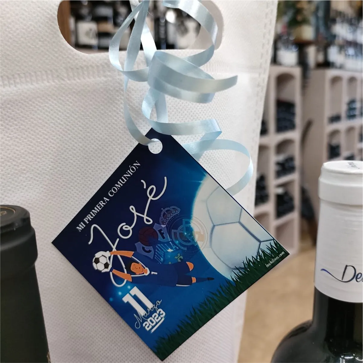 Bolsa de no tejido para botella, termosellada con fuelle en base.