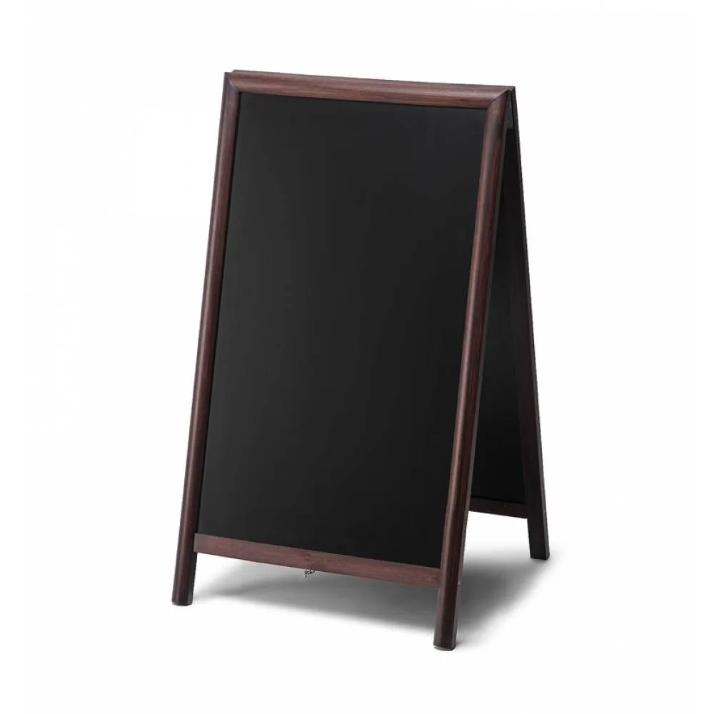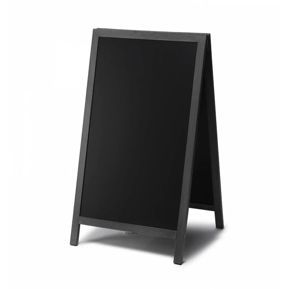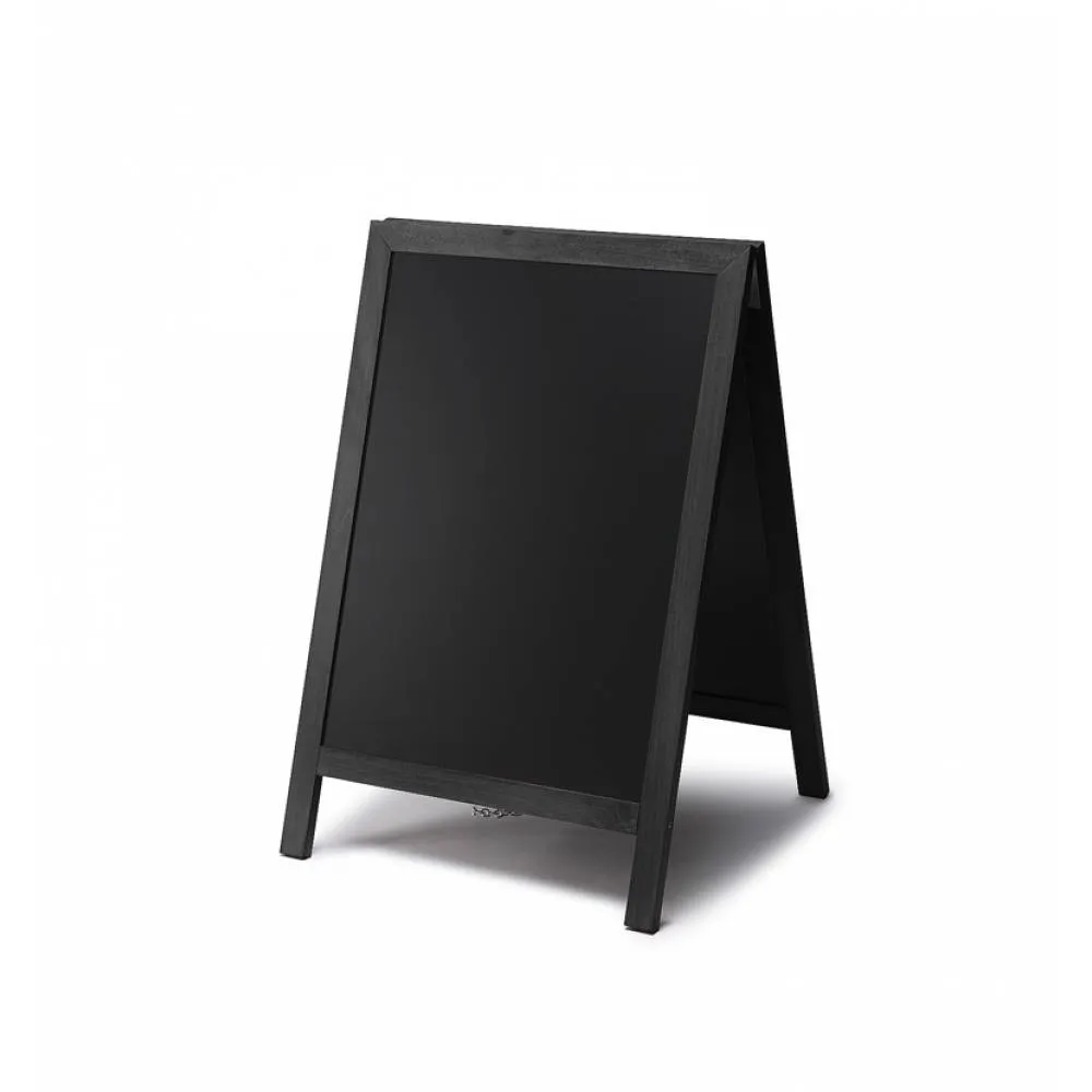 Pizarra doble de caballete en madera. Ideal para hostelería y pequeño comercio. Marco de madera noble redondeado barnizado con barniz UV mate. Apta para uso tanto interior como en exterior cubierto. Pizarra en ambas caras para que escribas tus mensajes con los marcadores de tiza como rotuladores de tinta líquida. Limpieza fácil con una esponja húmeda. ¡Crea tus mensajes rápido y con facilidad gracias al  Caballete de Madera TOP!