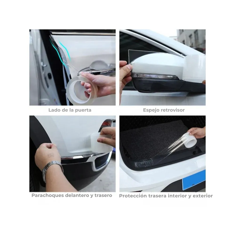 Además de su aplicación en los umbrales de puertas, esta cinta protectora es increíblemente versátil y se puede utilizar en una variedad de áreas del vehículo. Desde proteger los espejos retrovisores hasta los parachoques delantero y trasero, esta cinta ofrece una protección integral para todas las partes expuestas de tu automóvil.