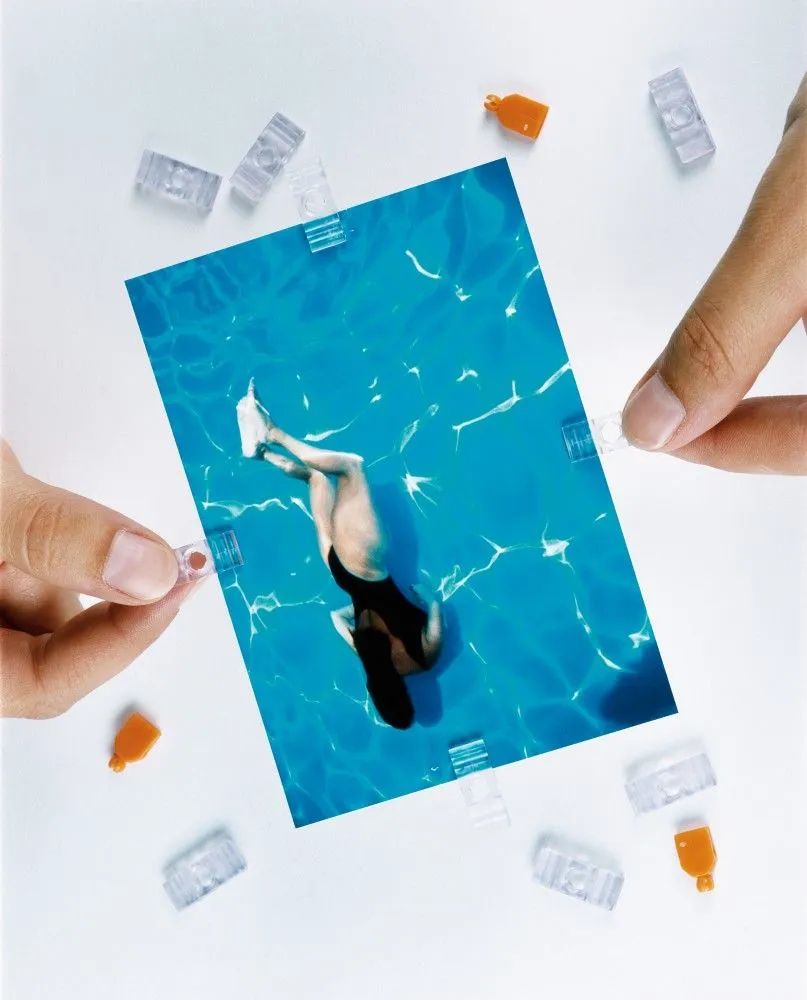 Los Fotoclips de Lomography son pequeños soportes transparentes con los que puedes mostrar tus fotografías construyendo murales, mosaicos en la pared, cortinas o cubos de fotografías, te da la posibilidad de crear un sin fin de formas. Cantidad: 100 clips 2D y 10 clips 3D.