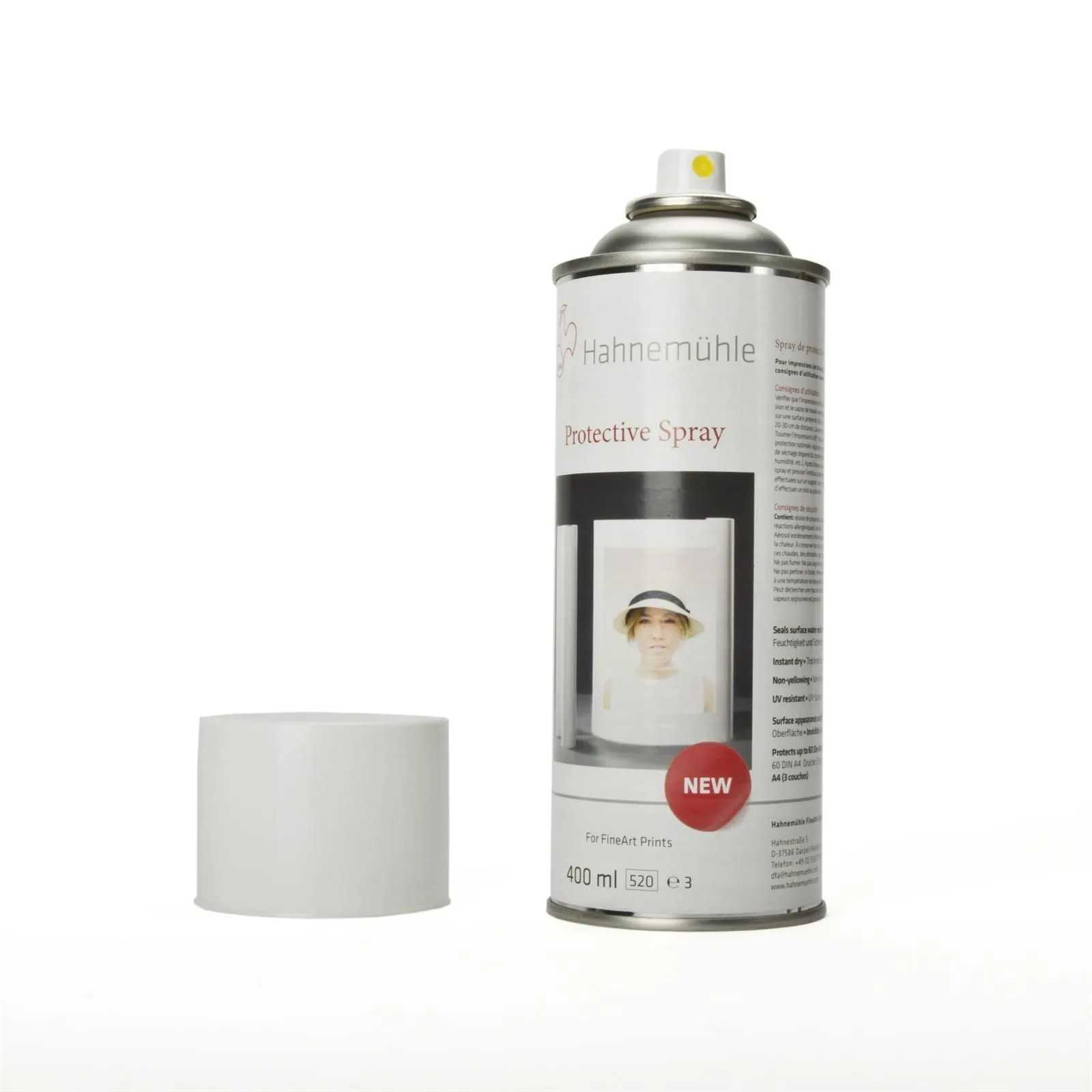 Hahnemühle spray protector ofrece una protección eficaz para las impresiones inkjet, actuando como un sellante contra la suciedad y humedad a la vez que mejora su resistencia al agua y al envecimiento. Rendimiento: 60 copias tamaño A4 (aplicando tres capas). Para asegurar la máxima protección, se recomienda la aplicación de tres manos: la primera vertical, la segunda horizontal y la tercera en diagonal. Apto tanto para acabados brillo como mate, siendo completamente transparente, y no amarillea ni modifica el aspecto final del papel.