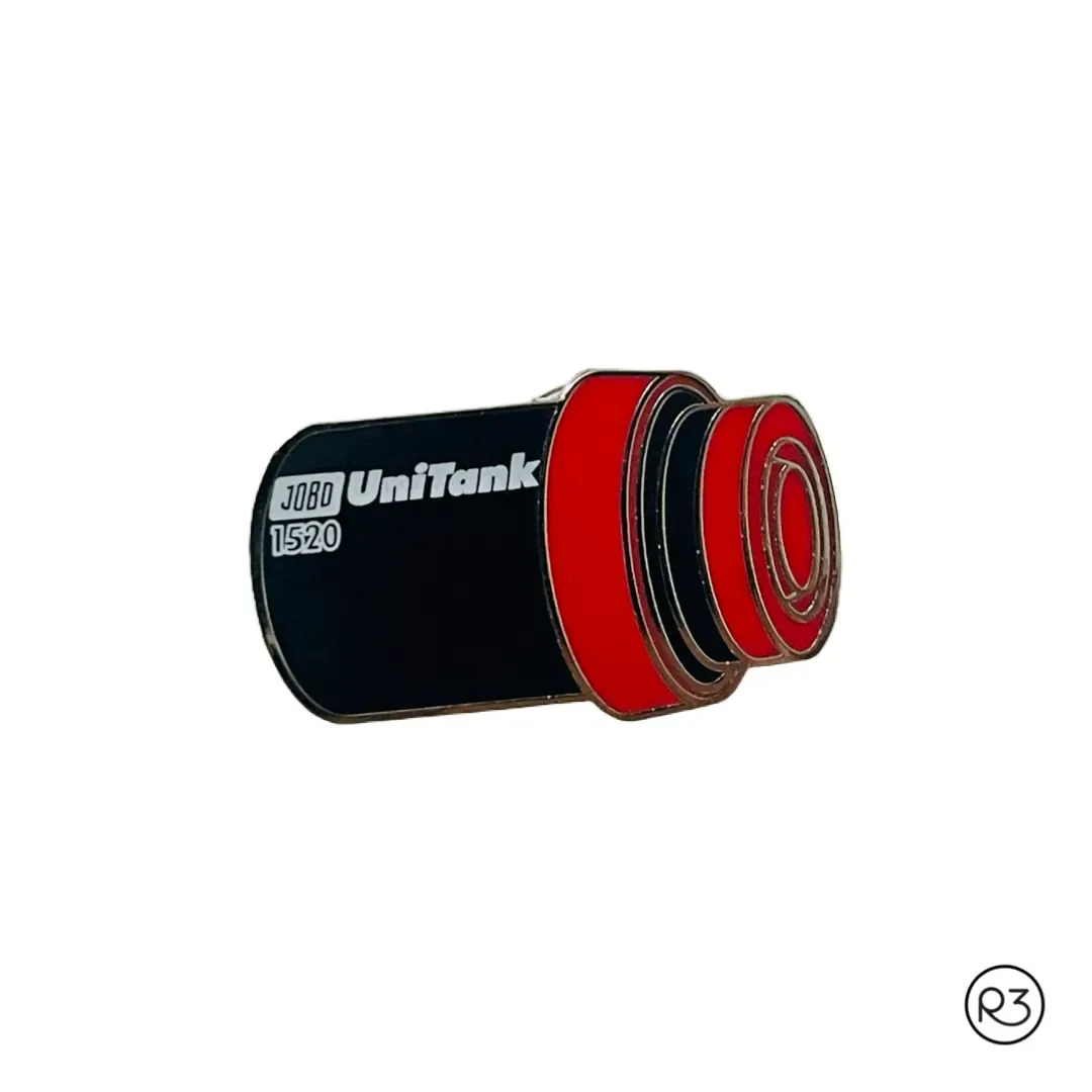 Muestra al mundo tu pasión por la fotografía analógica con este fantástico pin esmaltado con una representación del íconico UniTank 1520.