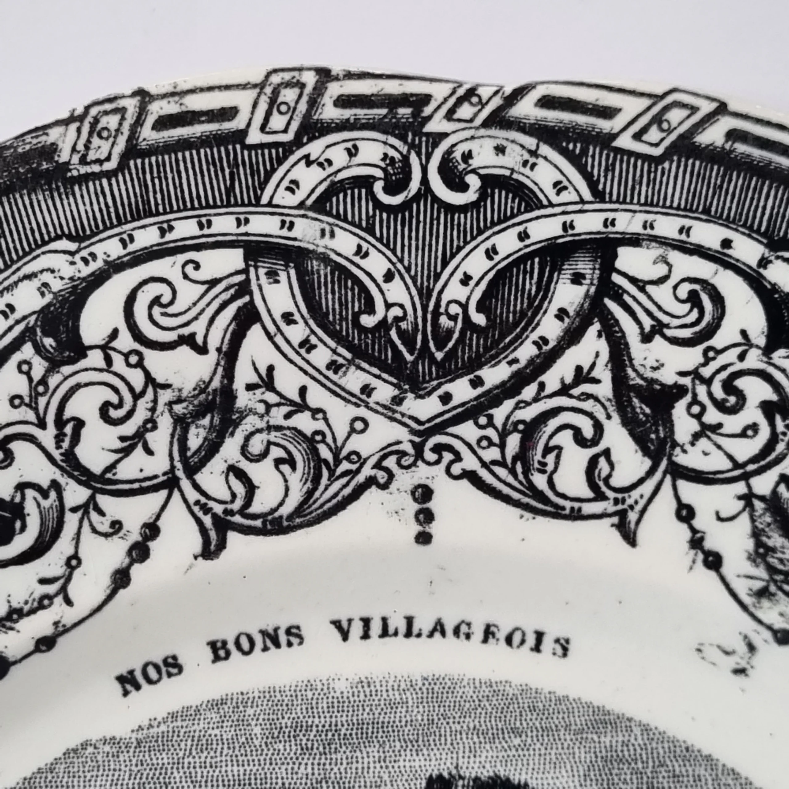 De la colección «Nos bons villageois», juego de seis platos con escenas que representan la vida cotidiana de las villas del campo. Francia, finales del siglo XIX. En buen estado de uso. Pueden presentar los signos propios del paso del tiempo, acordes a su antigüedad. Sin accidentes. Sin grietas. Observe las fotografías, forman parte de la descripción.