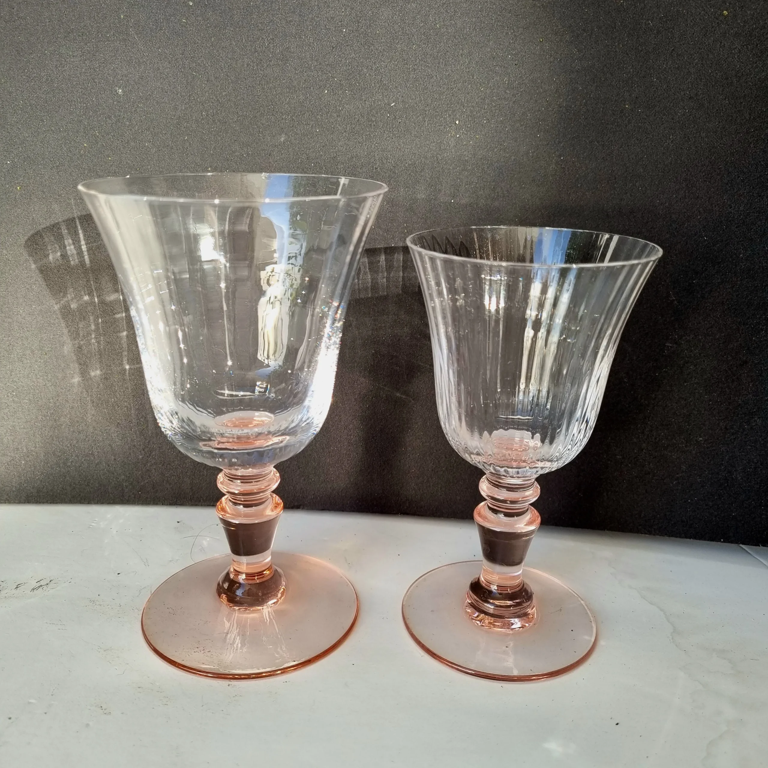 Set de copas de cristal rosa para ocho comensales. Francia, siglo XX. Muy buen estado. En total, 16 piezas,