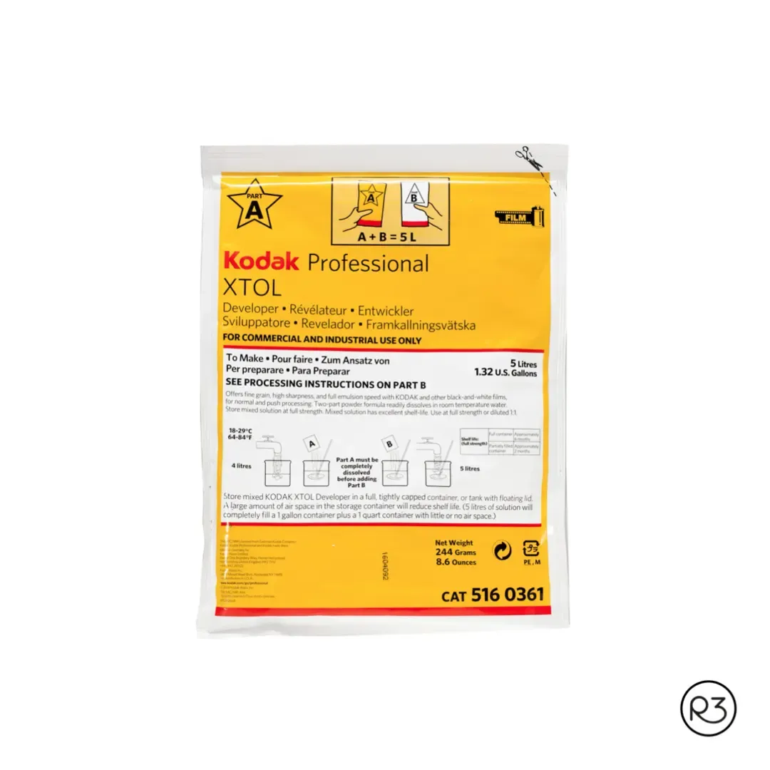 Kodak XTOL es un revelador en polvo a base de ácido ascórbico, de dos componentes (A+B), que es compatible con la mayoría de las películas profesionales en blanco y negro. Proporciona una calidad de imagen muy alta, sacando el máximo partido a la sensibilidad de la emulsión.