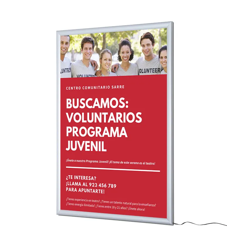 Sistema de apertura frontal que permite reemplazar sus posters de forma rápida.