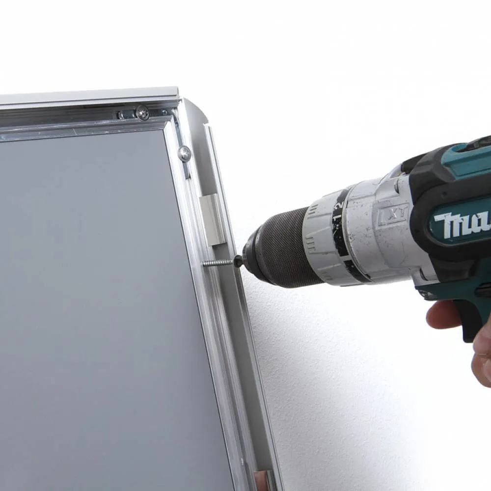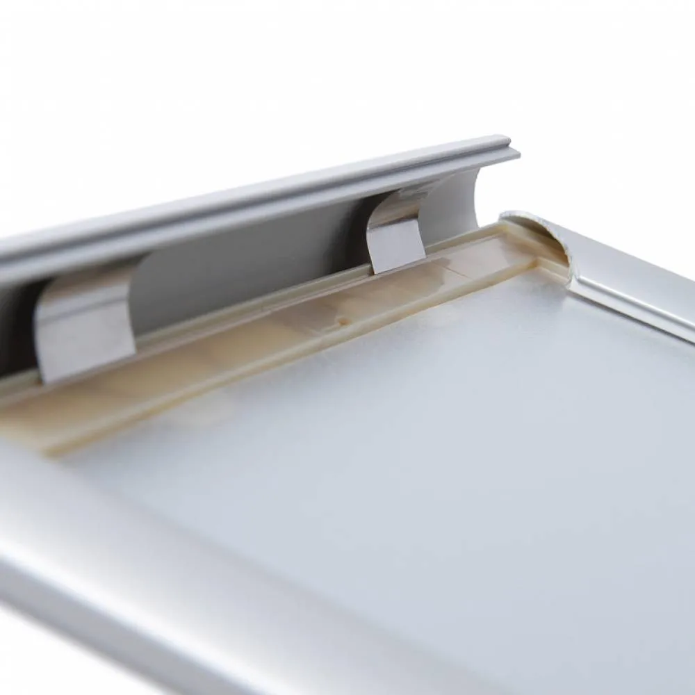 • Portaposter con marco abatible de 70×100 en aluminio anodizado (25mm) Plata mate o Negro