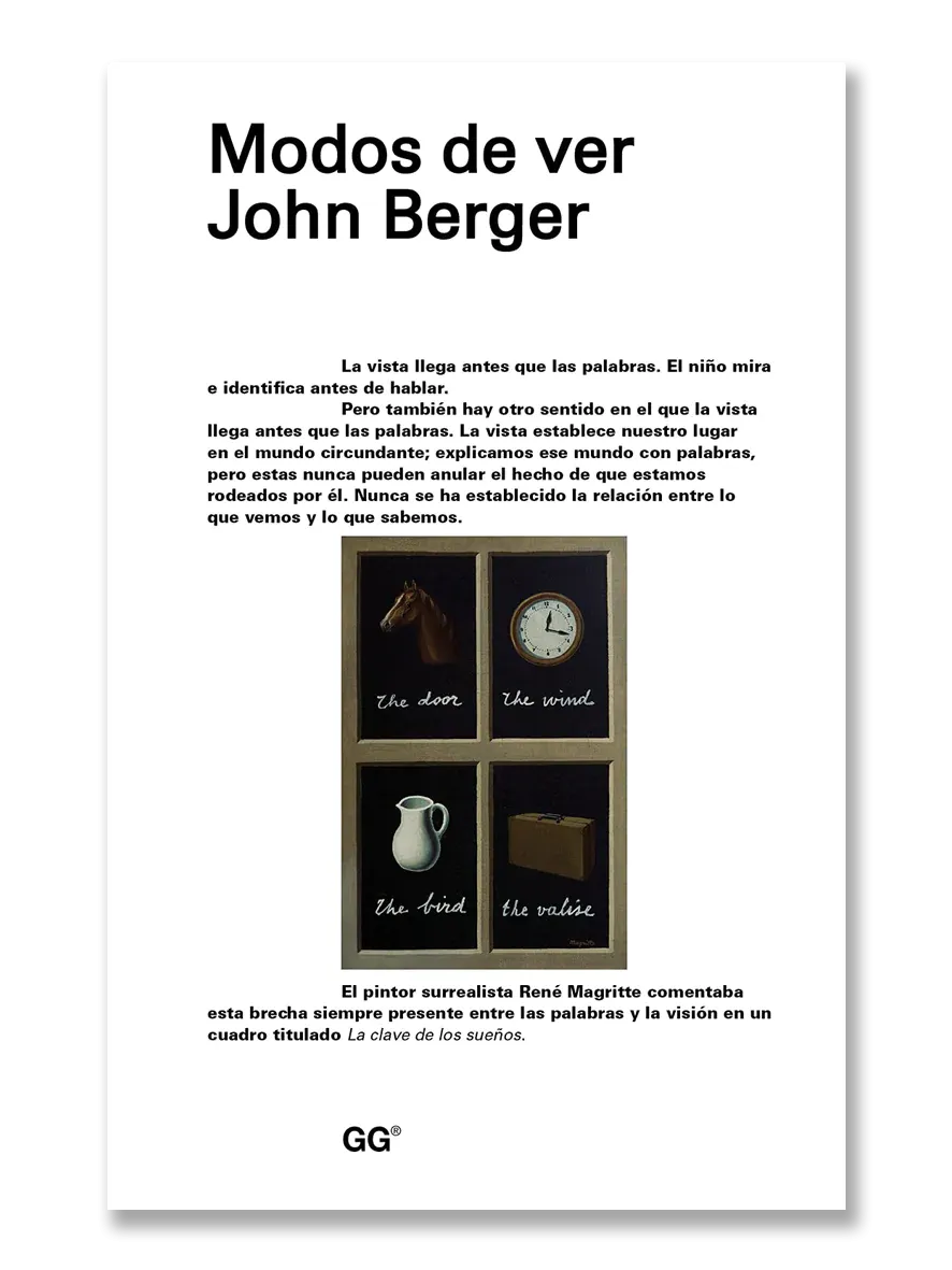 El programa televisivo Ways of seeing, dirigido en 1972 por un jovencísimo John Berger, se propuso analizar cómo nuestros modos de ver afectan a la forma de interpretar. La serie recibió diversos premios, revolucionó la teoría del arte y fue adaptada al presente libro, convirtiéndose desde entonces en un título indispensable de la teoría del arte y de la comunicación visual. En estas páginas, Berger analiza cuatro aspectos de la interpretación de la pintura al óleo: su origen relacionado con el sentido de la propiedad, el uso continuado de la mujer como objeto pictórico, la relación entre la herencia visual de la pintura y la publicidad y, finalmente, la transformación del significado de la obra original en el marco de sus múltiples reproducciones. En esta nueva edición, minuciosamente revisada, se ha recuperado el diseño original de Richard Hollis.