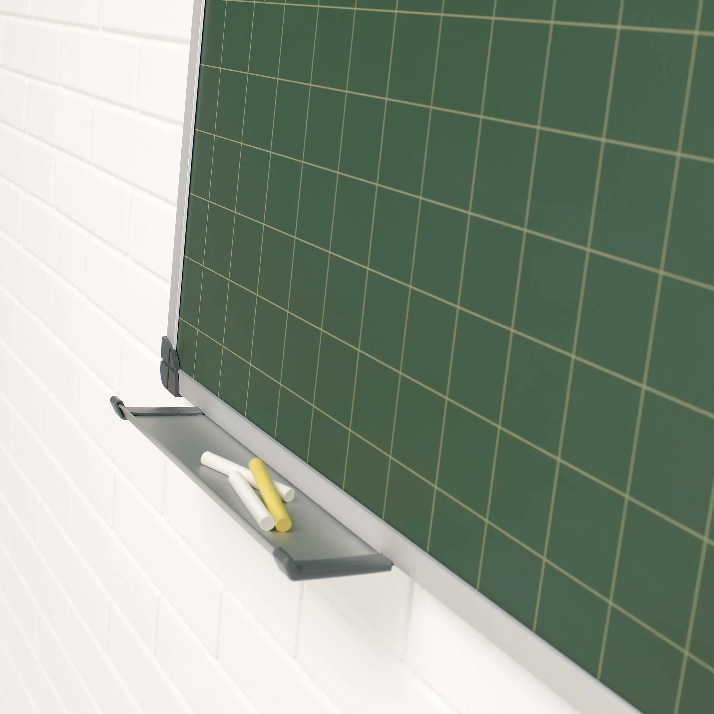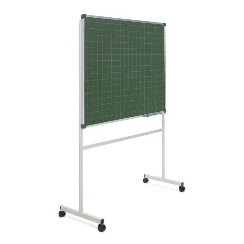 Pizarra de pie en acero vitrificado verde con cuadricula y soporte en «T». Enmarcada con perfil de aluminio anodizado en color plata mate. Superficie de acero vitrificado a 800ºC con garantía de por vida.