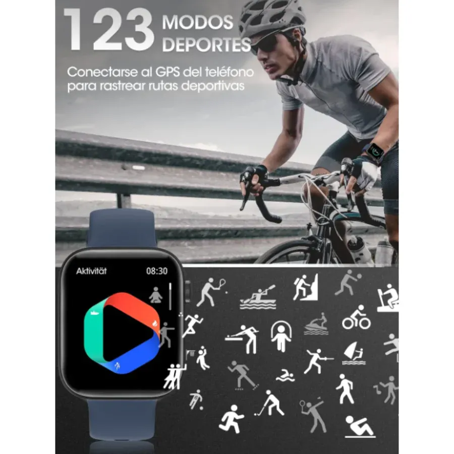 - Compatible con iOS y Android: El reloj inteligente es compatible con los móviles iOS (Apple) y Android (Samsung, Motorola, Huawei, HTC, Xiaomi, Sony, LG, Nokia, etc.)