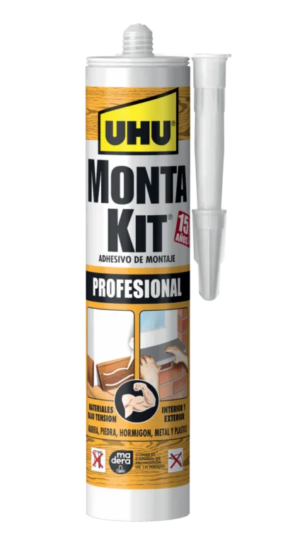 Adhesivo de montaje superfuerte, rellenante y universal a base de goma de neopreno. Para fijar fácil, fuerte y firmemente todo tipo de materiales. Aplicable tanto en interiores como en exteriores y apto para fijar materiales bajo tensión. Ya no se necesitan clavos ni tornillos.