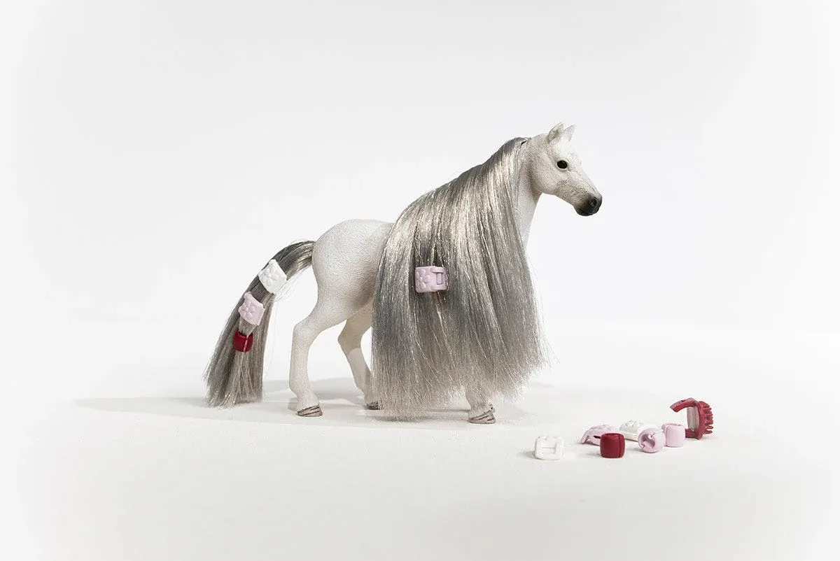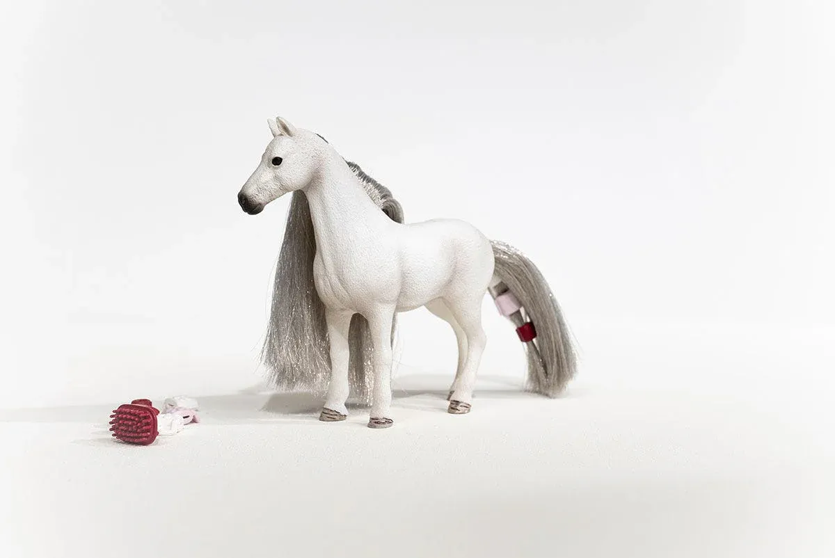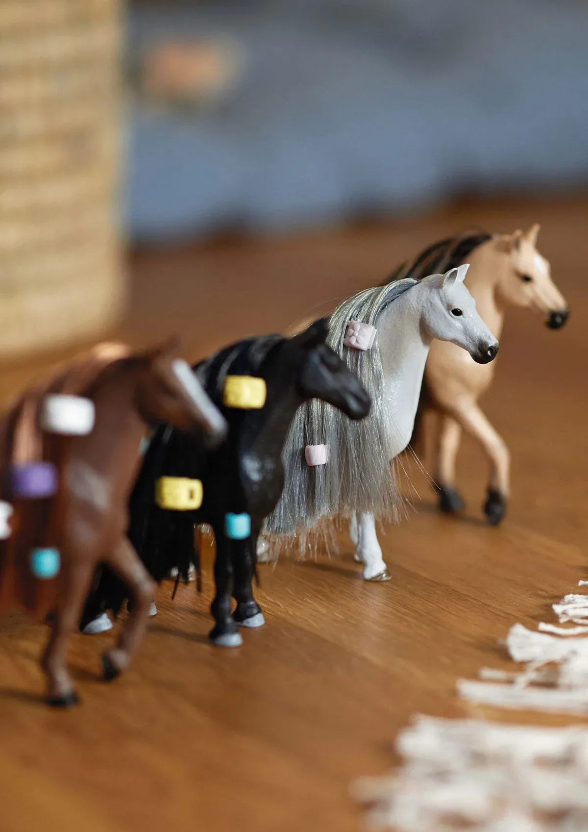 El nombre de la Yegua Quarter Beauty Horse de schleich® HORSE CLUB Sofia’s Beauties indica que es la campeona absoluta en carreras de cuarto de milla. Son 402 metros. Si la talentosa yegua se deja crecer un poco más el pelo, puede que pronto sea así de largo. Eso sería muy práctico, porque así podría simplemente seguir su melena y puede que llegara a la meta un poco más rápido aún. Luego podríais dedicar el tiempo sobrante a cepillarla y hacerle trenzas. ¿Qué te parece la idea?